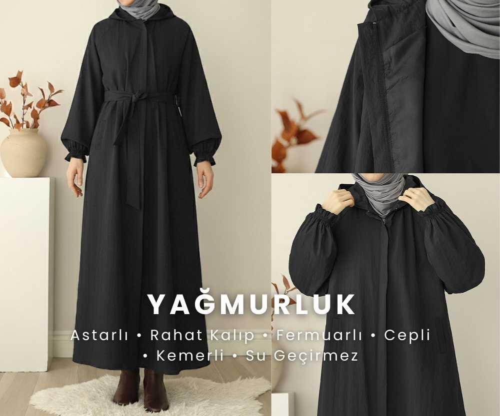 Ahu Biyeli Abaya Ferace - Siyah
