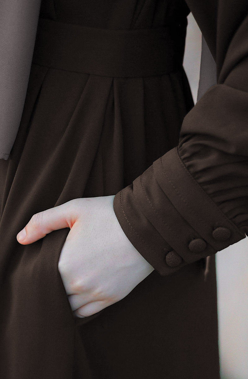 | Detay | Önden gizli boydan düğmeli, gizli cepli |